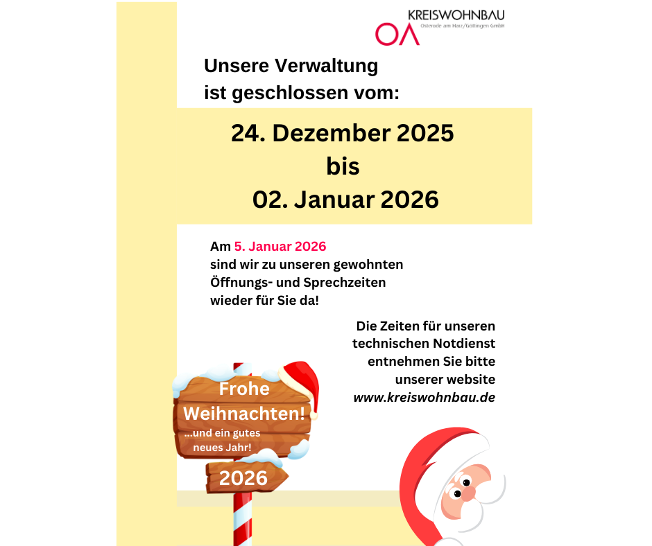 Nach vielen Jahren der Verwaltung von Wohnungseigentum in Osterode und Herzberg verabschieden wir, die Kreiswohnbau Osterode am Harz/Göttingen, uns von diesem Angebot.